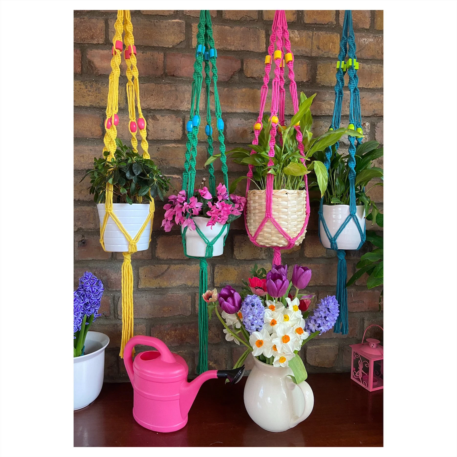 How to create a beautiful and colourful macrame plant hanger.